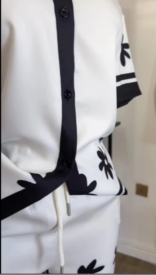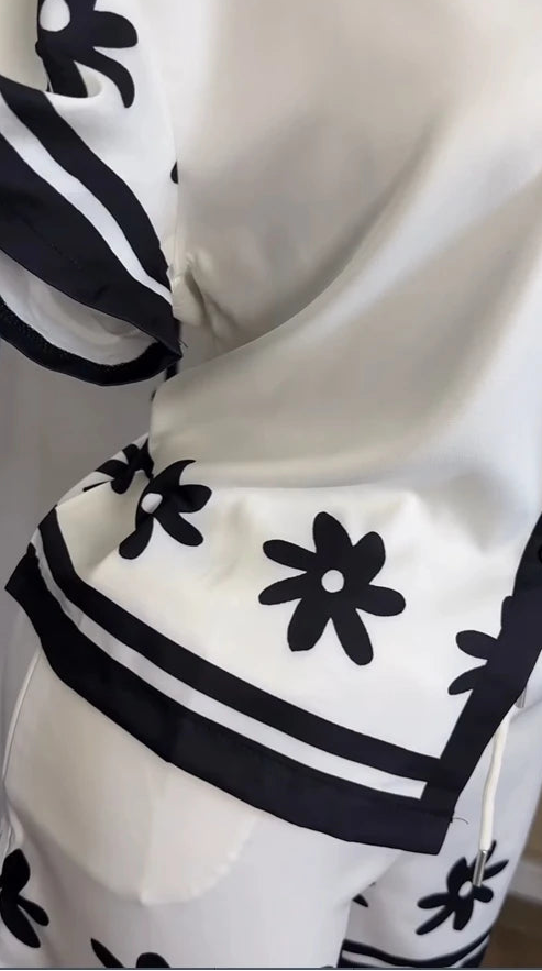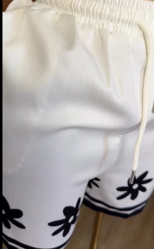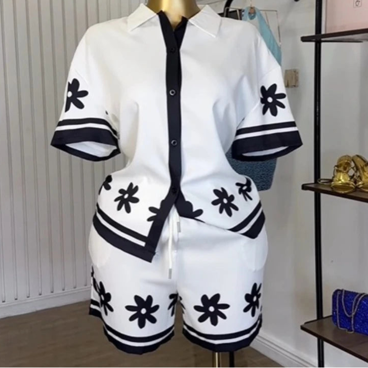 Floral print two-piece set, half-sleeved T-shirt, top and shorts
