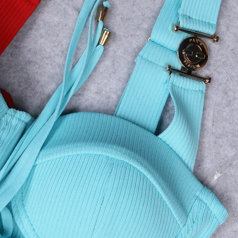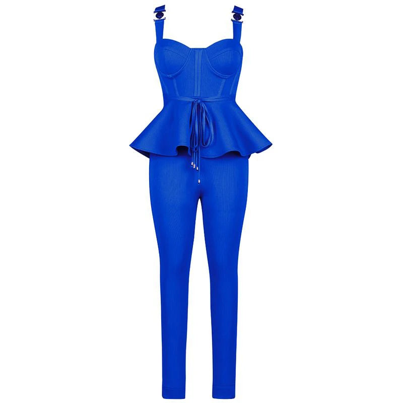 Discover our latest two-piece set: New bandage set for women with straps, ruffles, lace and a sensational design. A sleeveless crop top and pencil pants that fit your body like a second skin. Sexy and elegant for any special occasion.