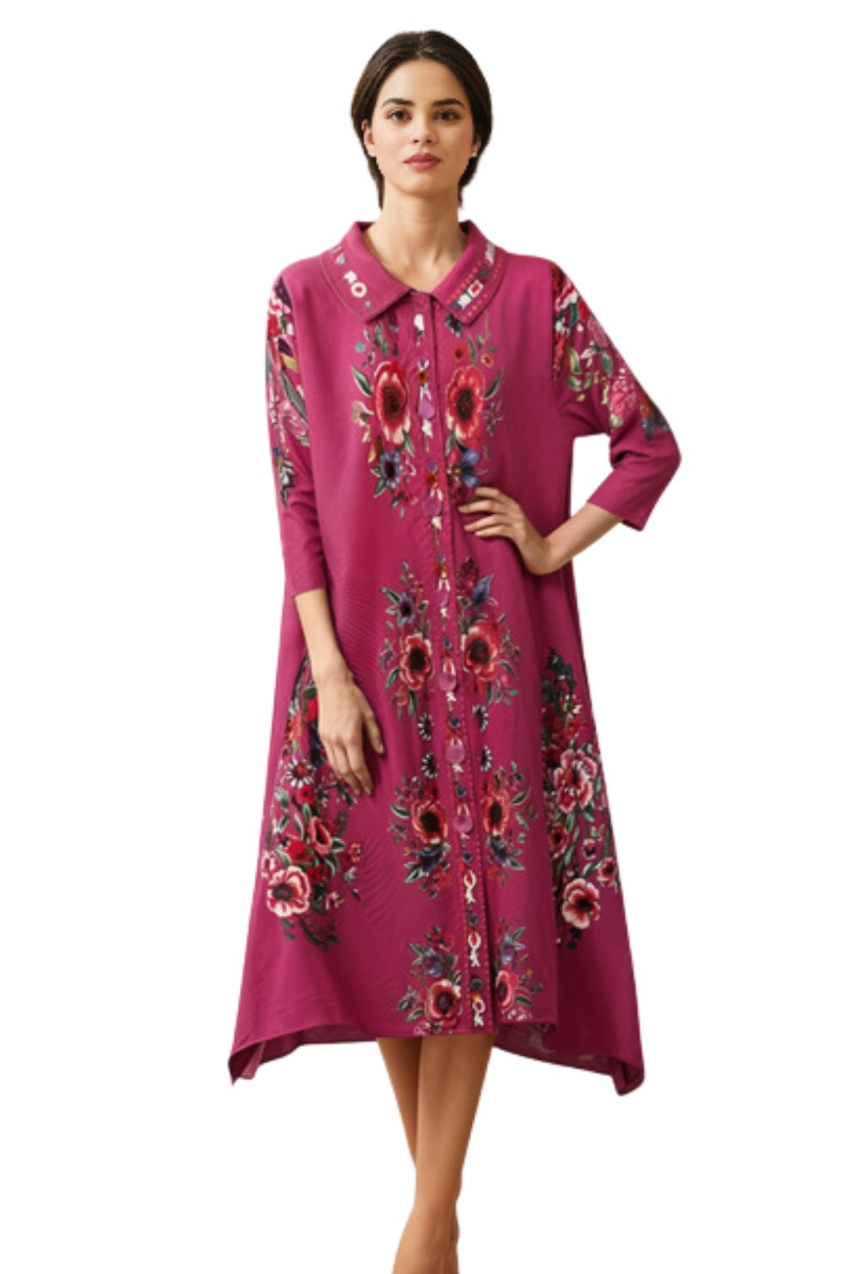 This Summer Casual Vintage Flower Shirt Dress for women offers an...