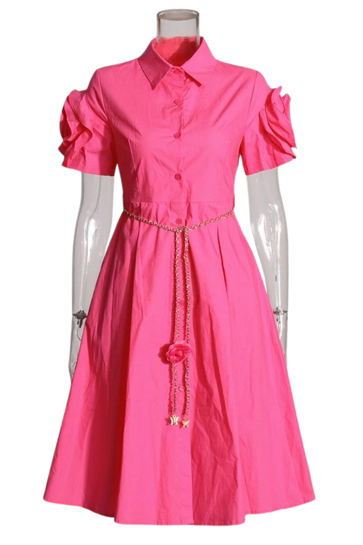 Solid Dresses Short Sleeve High Waist Metal Belt High Quality