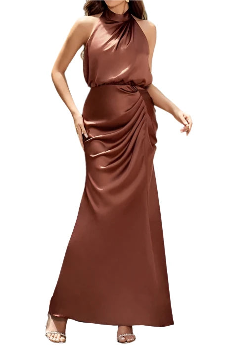 High Quality Draped Pleat Sleeveless Backless Bodycon Bodycon Long Dress