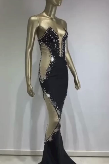 Elegant and sexy below-the-knee mermaid dress made of high-quality pulp mesh