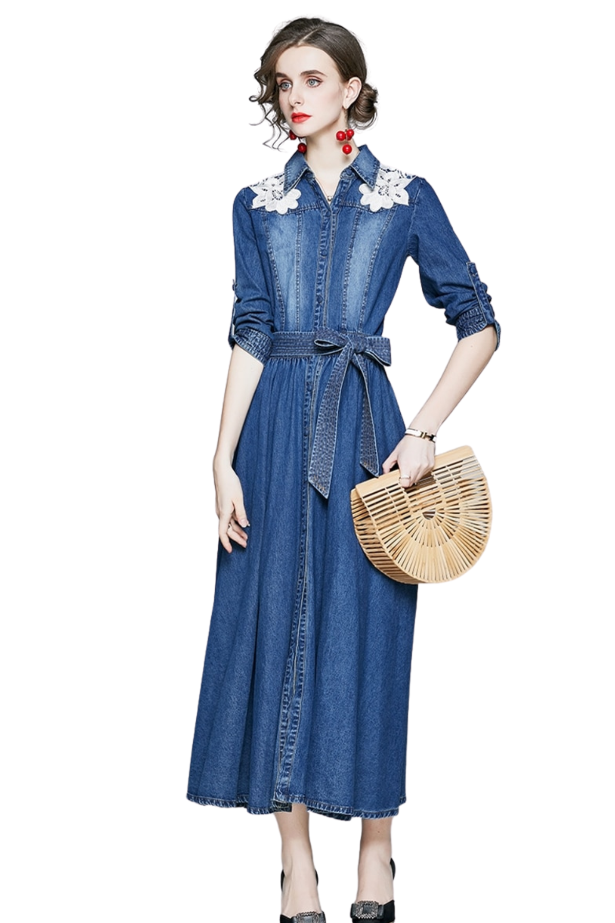 High Quality Prints Loose Patchwork Elegant Lapel Color Block Shirt Dress