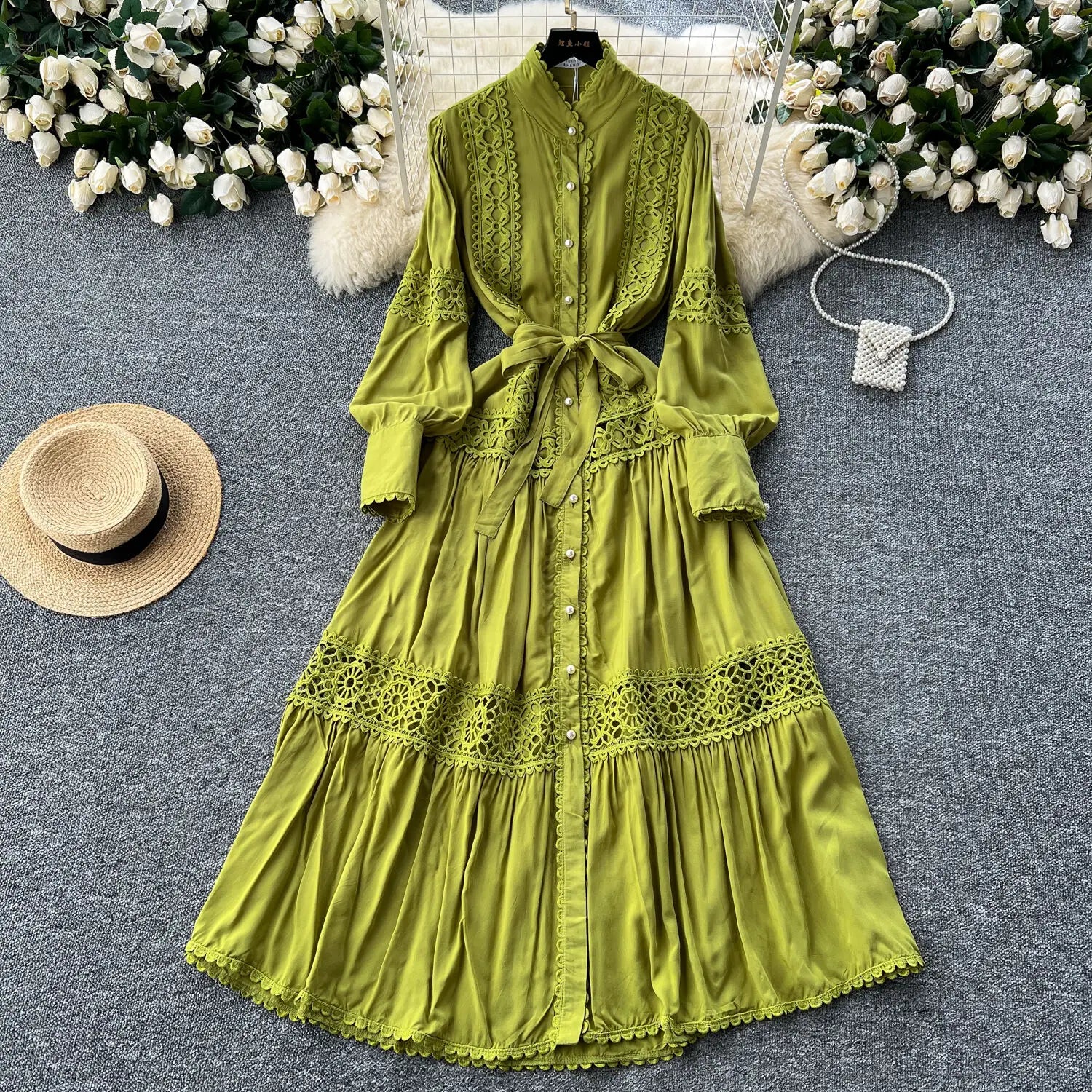 High Quality Round Neck Vintage Elegant Long Sleeve Dress
