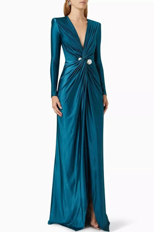 SPECIFICATIONS This high-quality dress features an elegant deep V-neckline and long...