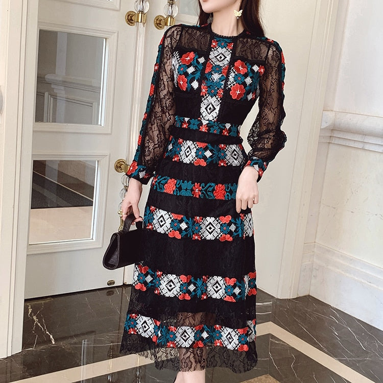 High Quality Long Sleeve Embroidery Elegant Lace Dresses