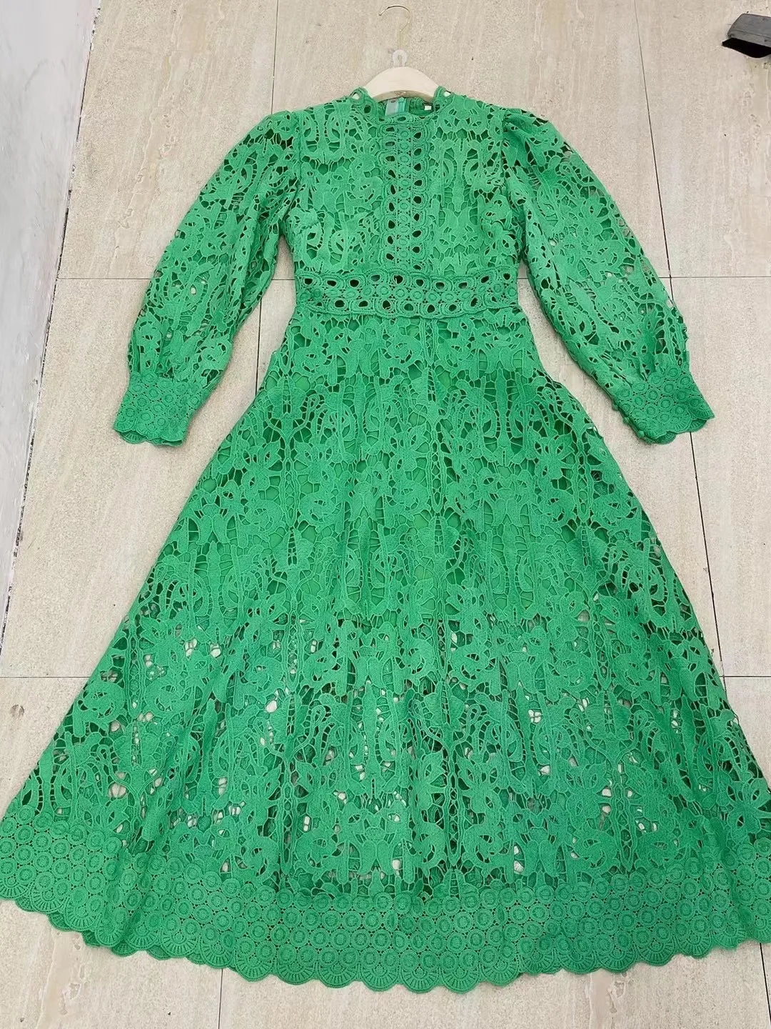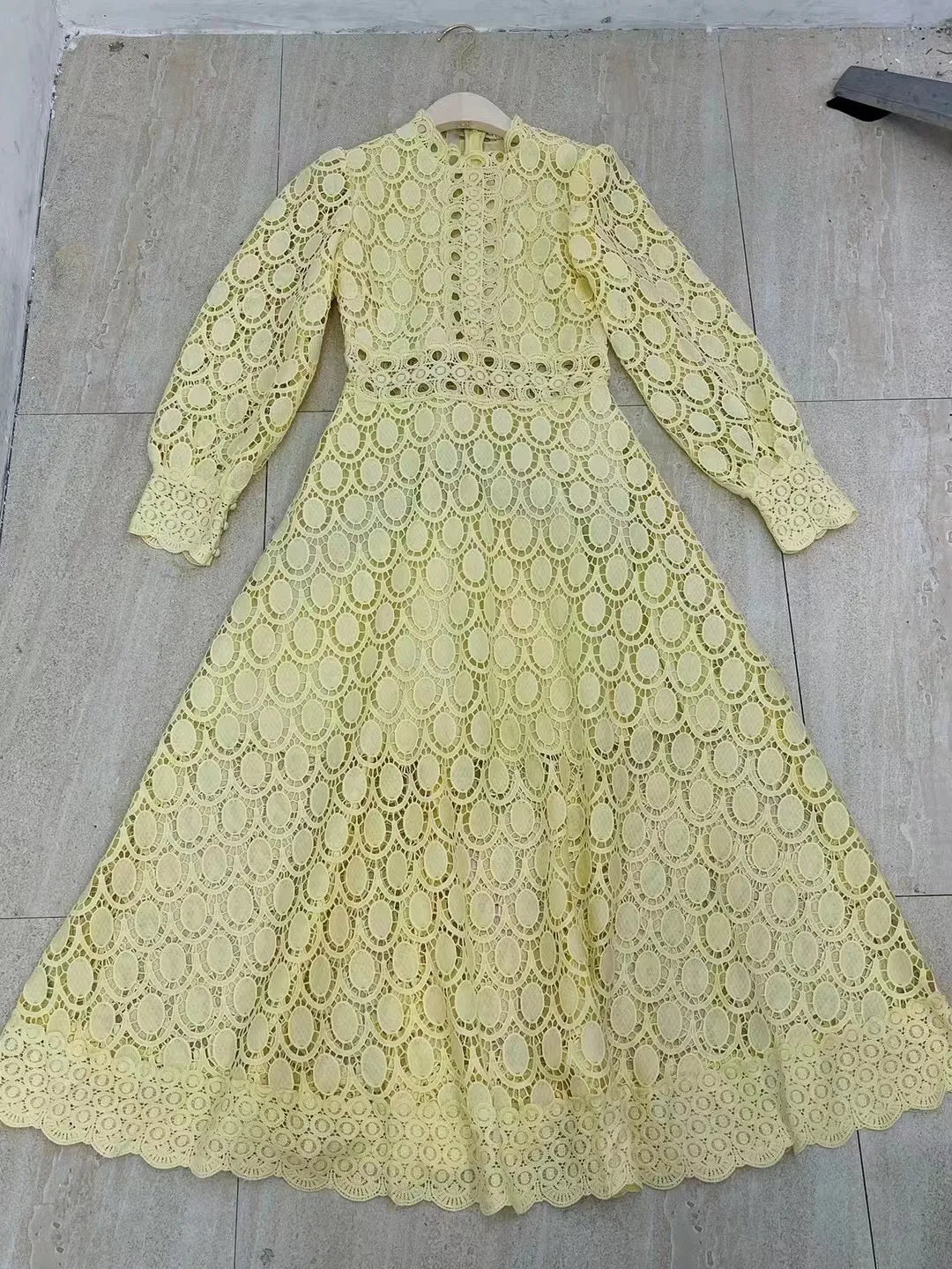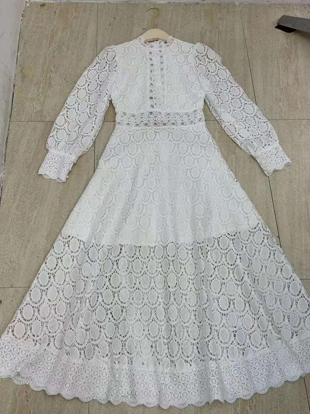 This elegant lace dress for women is the perfect addition to your wardrobe. Crafted from soft embroidery lace, it has a luxurious feel and an extremely pleasing aesthetic. With long sleeves and a midi-length, the dress is tasteful yet sexy with the flattering hollow out detail. An exquisite piece to keep you looking fashionable this summer and autumn.
