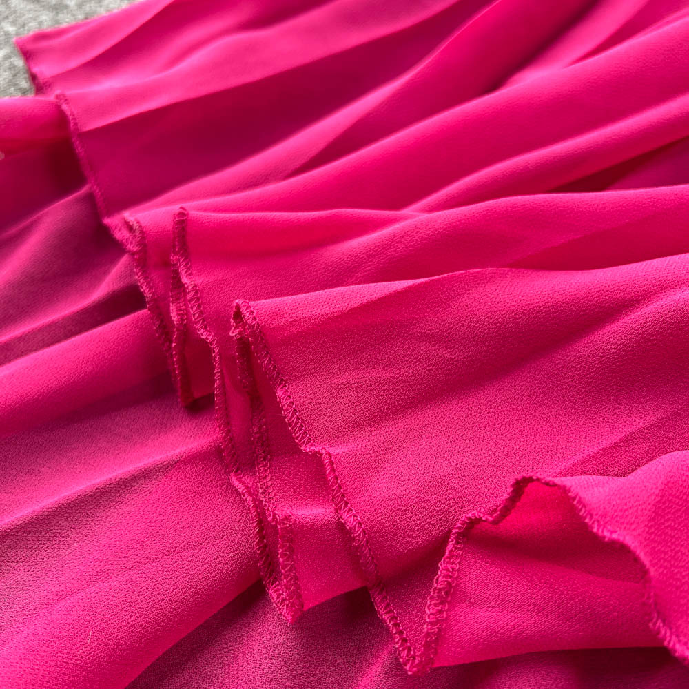 High Quality Solid Deep V Neck Sling Cross Ruffles Backless Pleated Maxi Dress