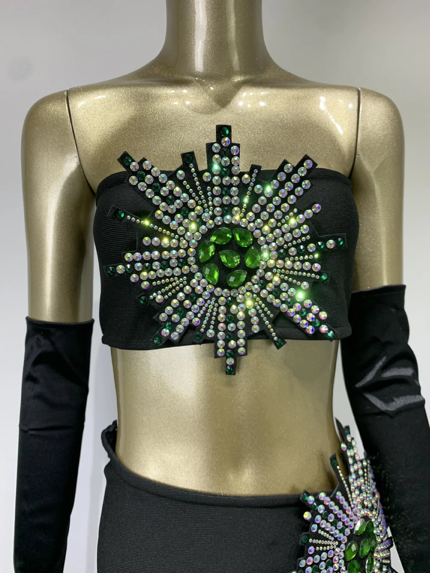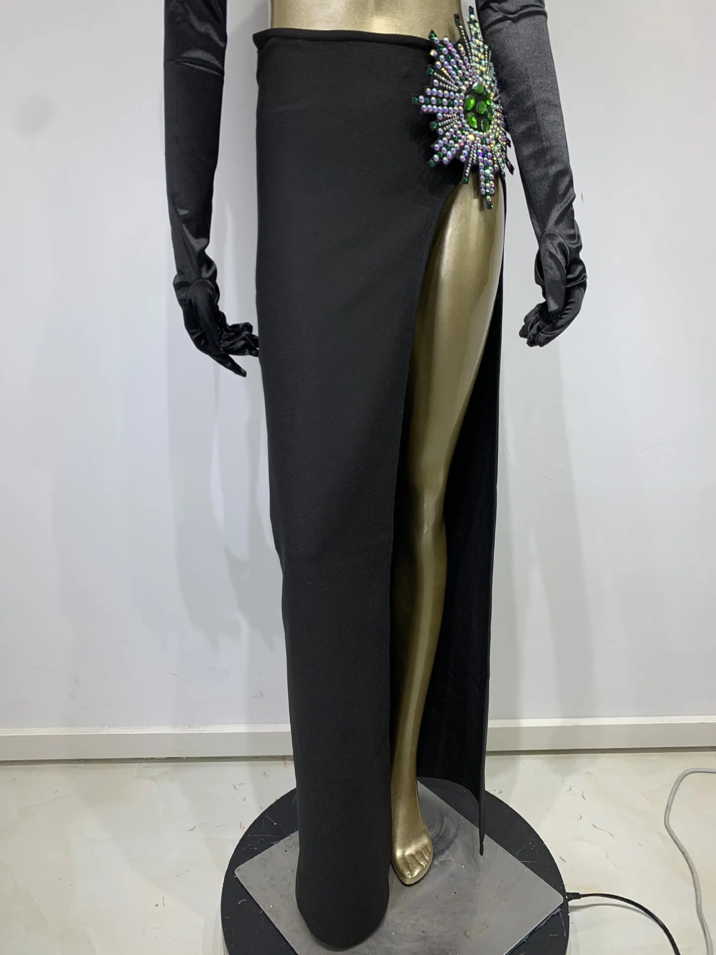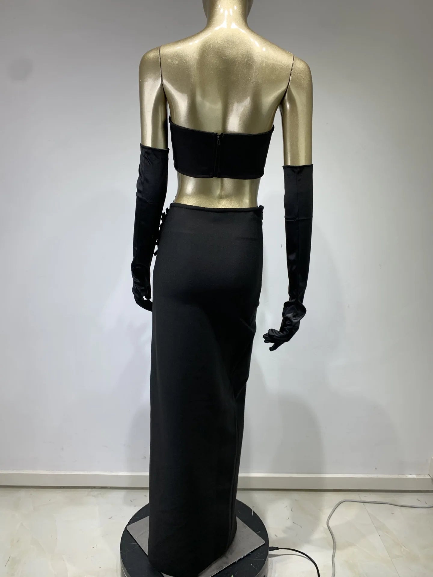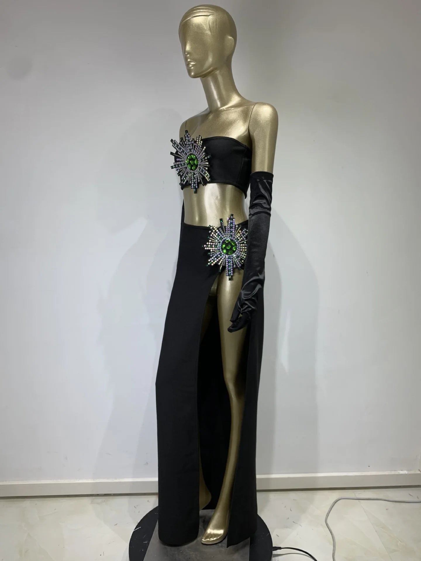 High Quality Diamond Luxury Sexy Long Bodycon Bandage Skirt Set