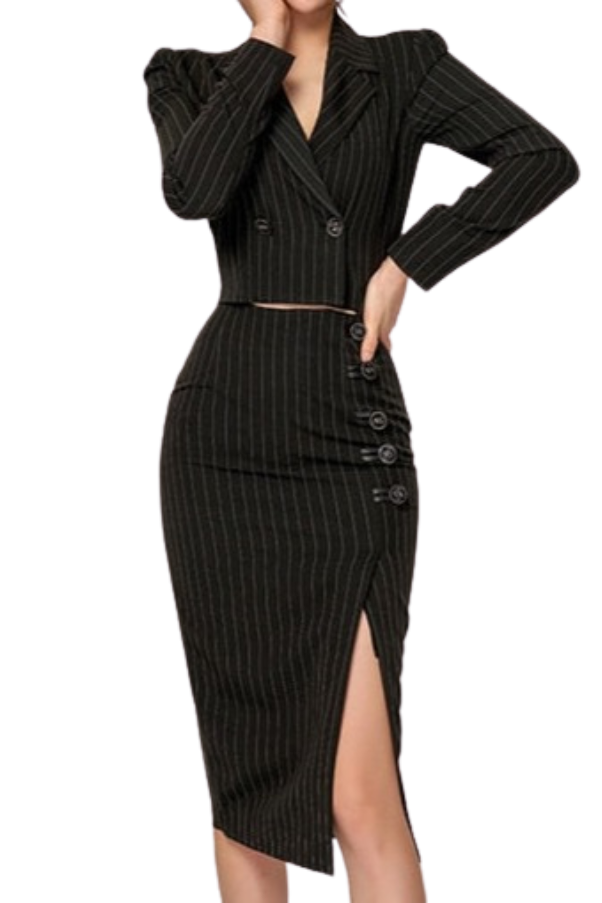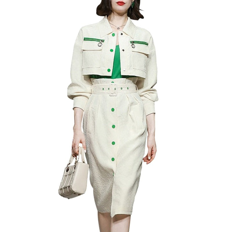 Elegant Formal Skirt Sets with Gold Buttons and Pocket