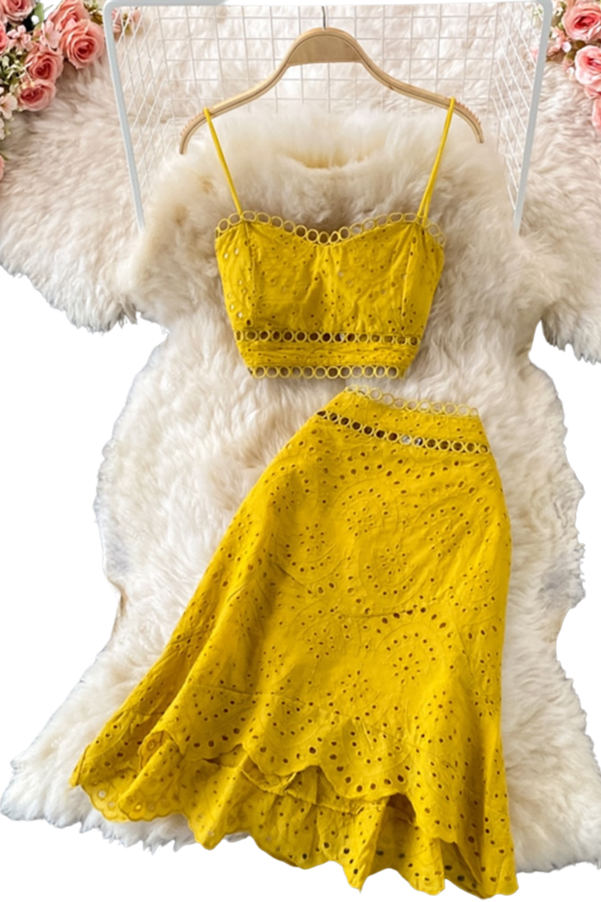 High Quality Hollow Out Crop Tops + Mermaid Skirt Two Piece Set