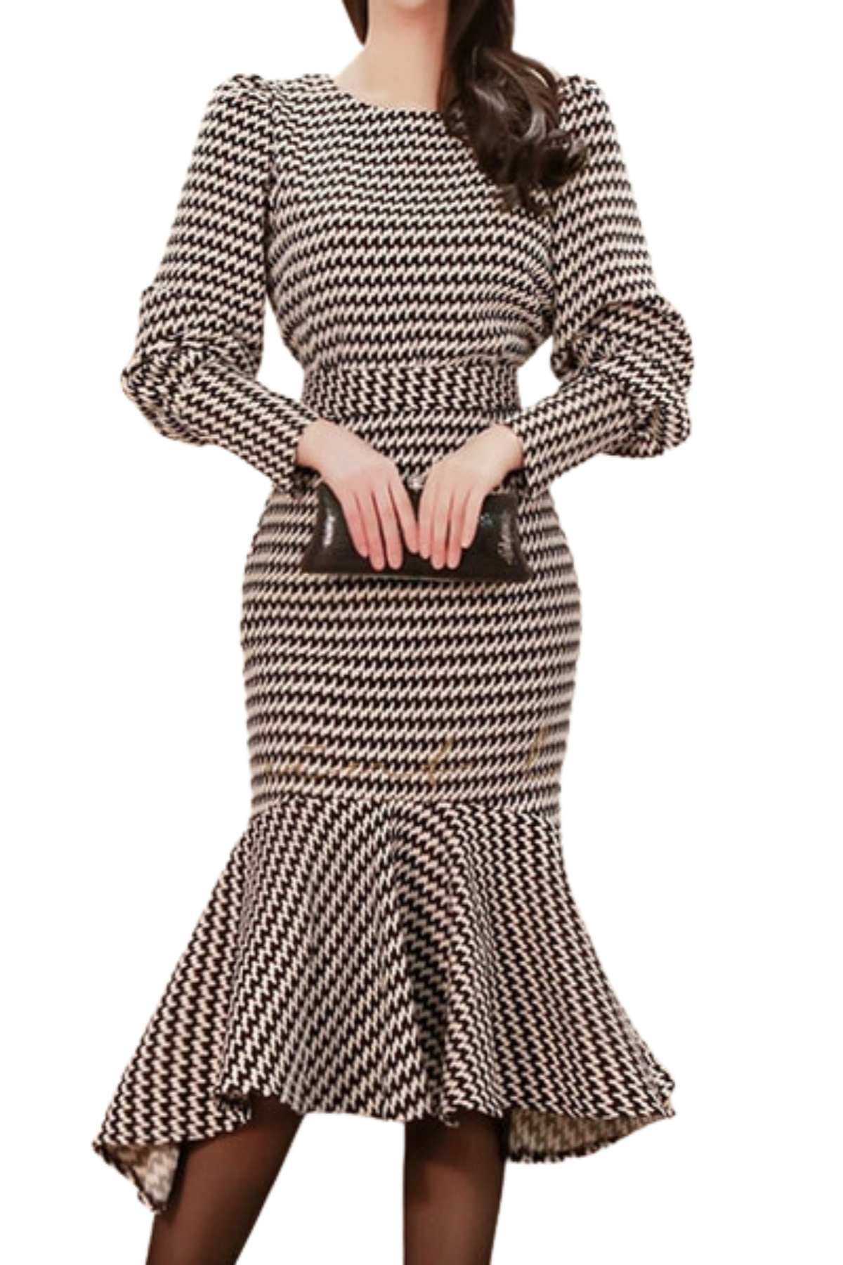 Two Piece Set Long Sleeve Tops and Mid-Calf Bodycon Mermaid Skirts, High Quality Wavy Striped