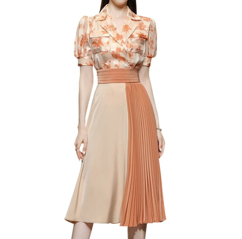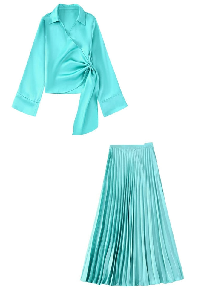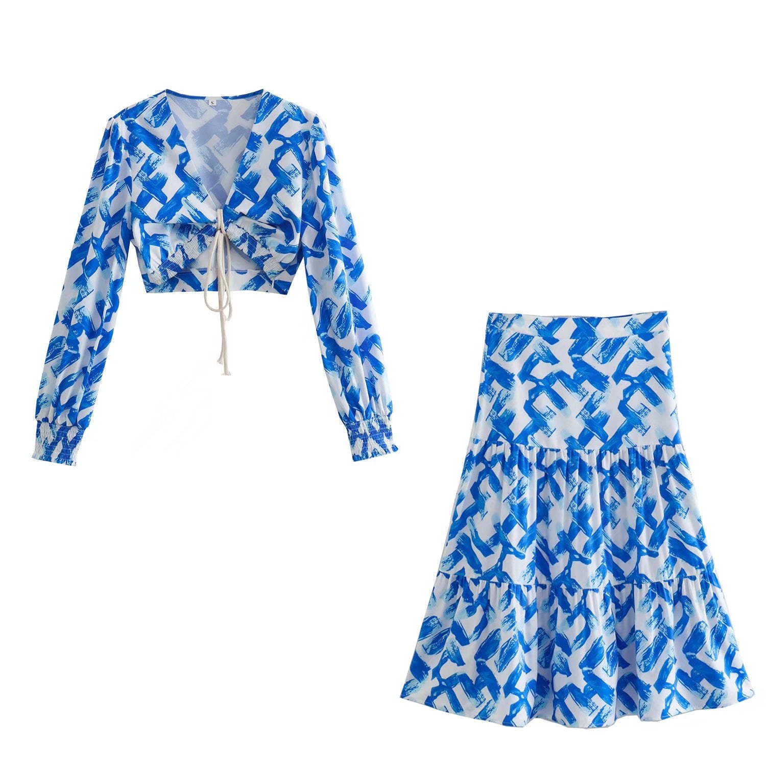 Two-piece sets printed shirt + pleated skirt matching colors