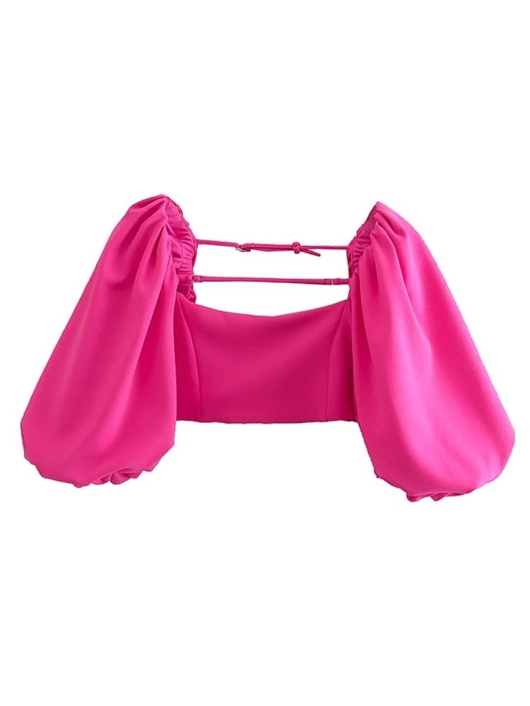 Women Lantern Sleeve Short Shirt Summer Female Solid Blouse Smock Crop Tops Elegant Streetwear LUJIA ALAN B196