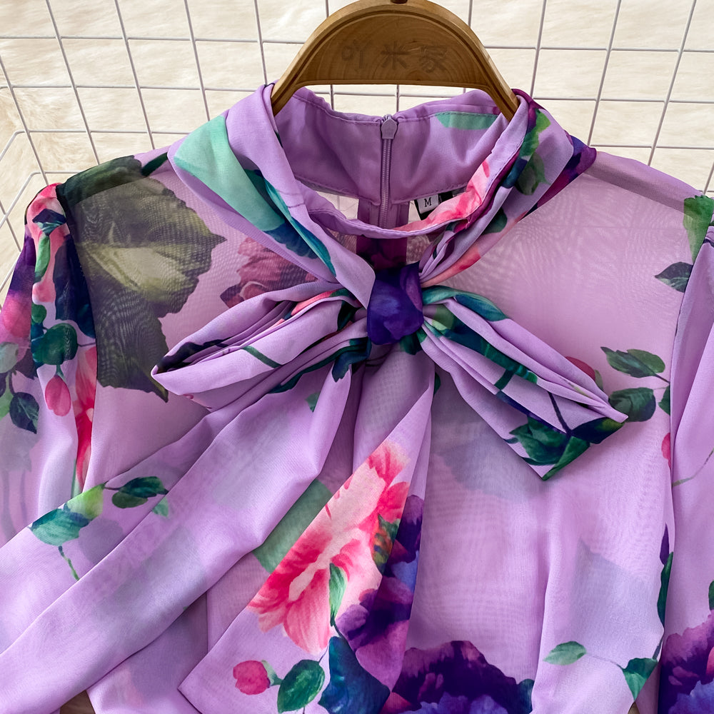 High Quality Floral Print Maxi Long Sleeve Pleated Dress