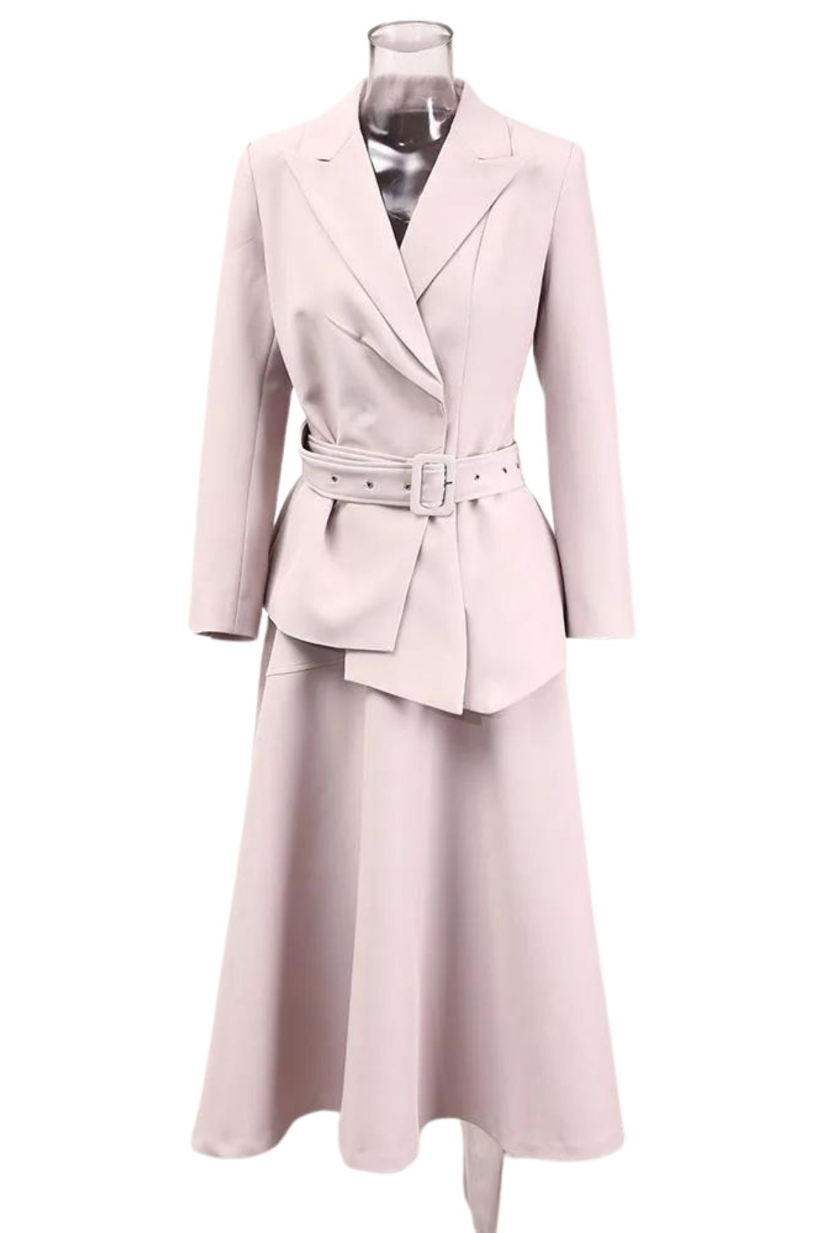 Quality Irregular Belted Jacket+Pleated Skirt 2 Piece Set