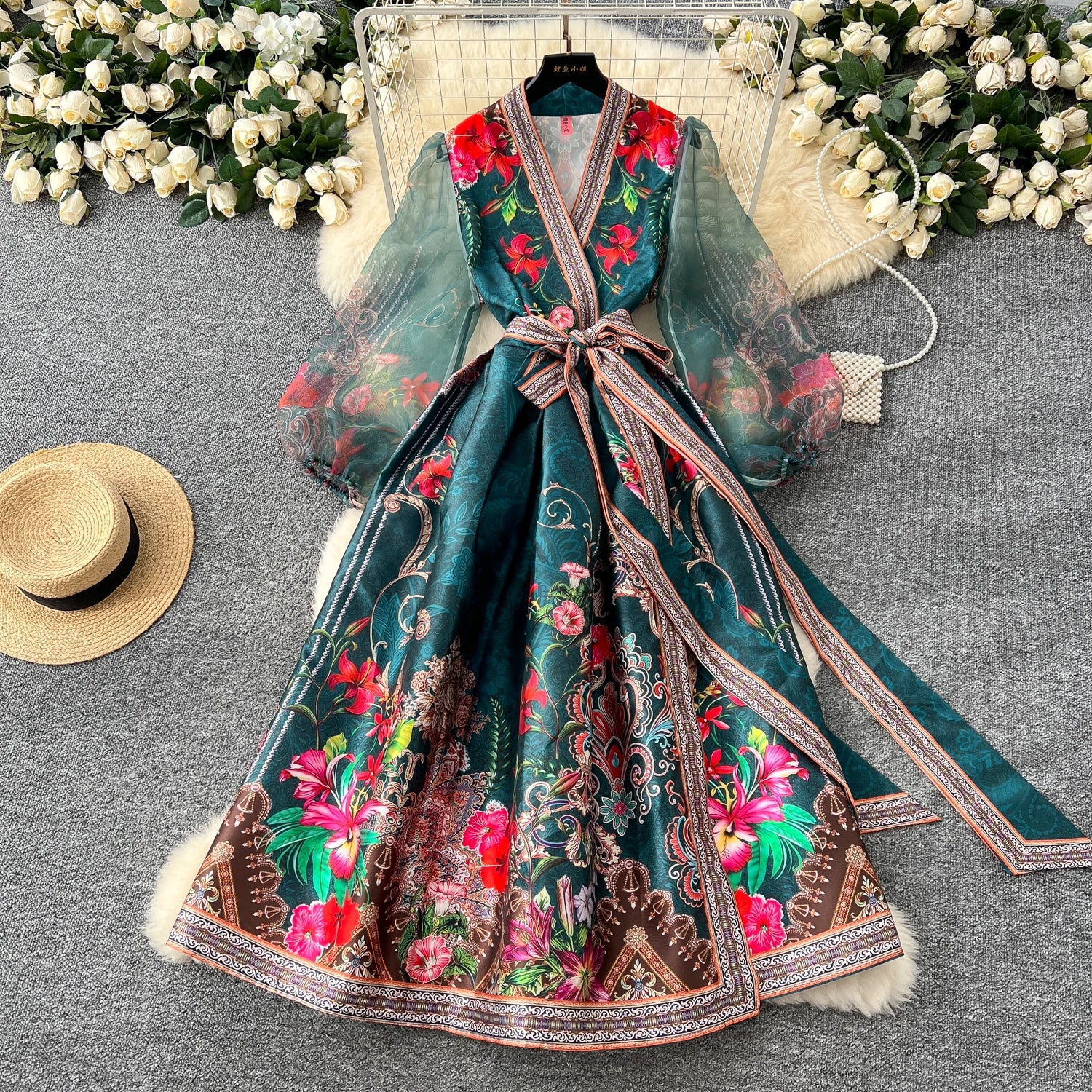 Look elegant and sophisticated in our French evening dress! Featuring a vintage design and mesh and print details, this dress is perfect for any special occasion. The ribbons add a touch of luxury while the long, casual cut makes you feel comfortable and chic. Make a memorable entrance in our exclusive French festival clothing!