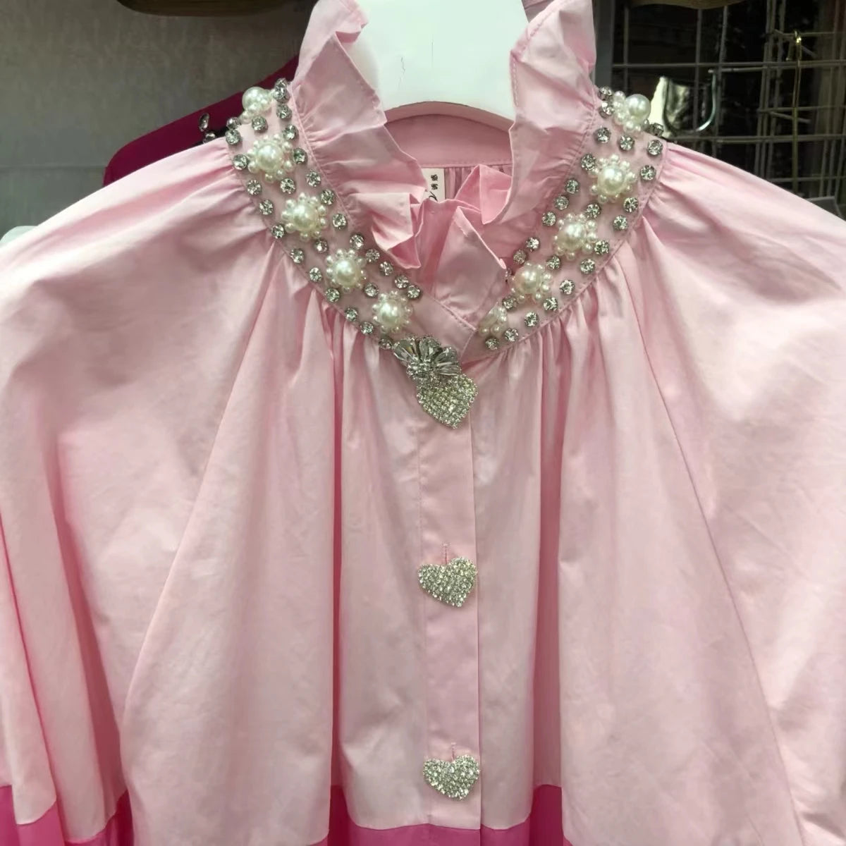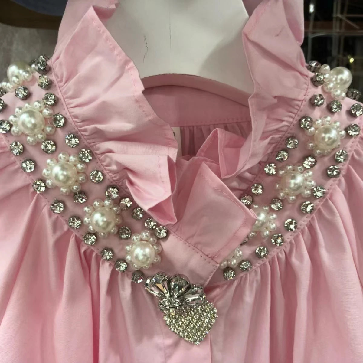 High Quality Long Sleeve Luxurious Style Beaded Diamond Embroidery Cotton Shirt
