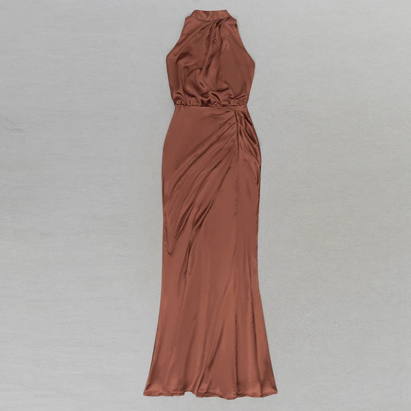 High Quality Draped Pleat Sleeveless Backless Bodycon Bodycon Long Dress